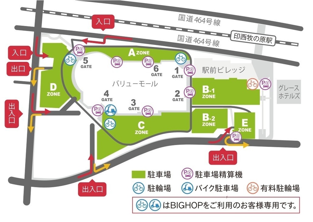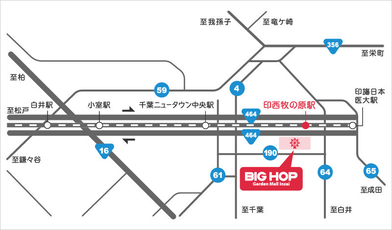 アクセス&駐車場|BIG HOP(ビッグホップ)ガーデンモール印西 | 千葉県印西市、印西牧の原駅前のショッピングモール