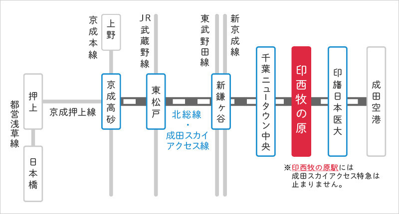 - JR武蔵野線 東松戸駅より印西牧の原駅まで 22分